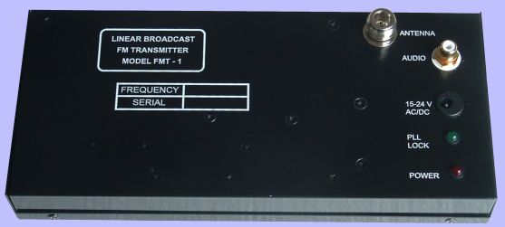 to 2W | Controls: | | Audio input level, RF output power, freq. 4 rotary switches for frequency | Frequency Range: | | 87 to 108MHz in 100kHz steps | Carrier Freq. Stability: | | 0.0005% | PLL Phase Jitter: | | 0.001% | Spurious: | |